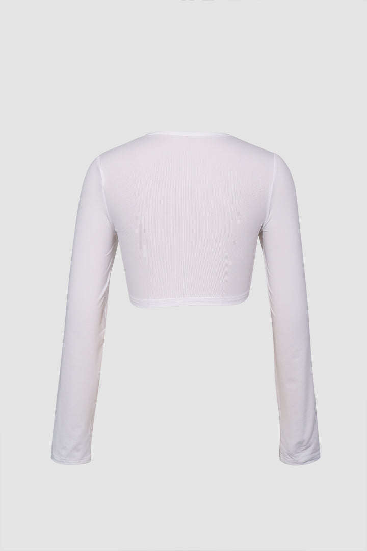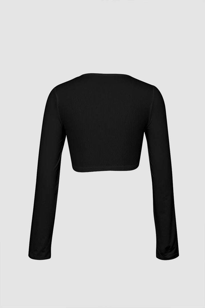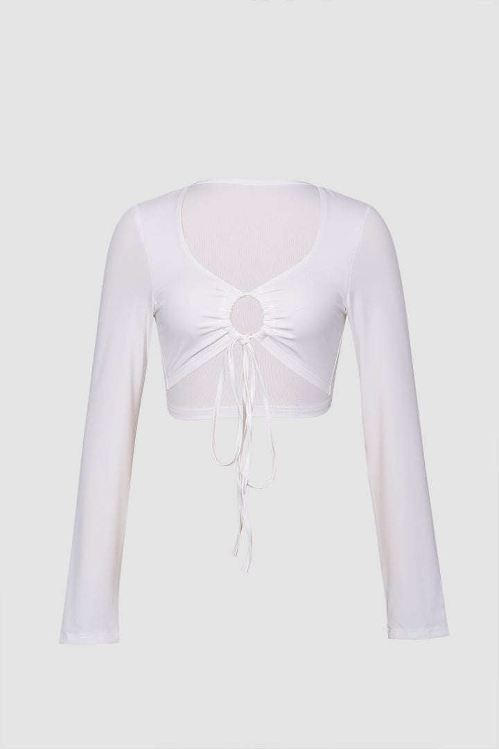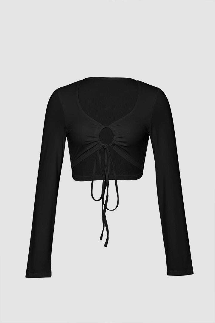 Tie Front Cropped Long Sleeve Top