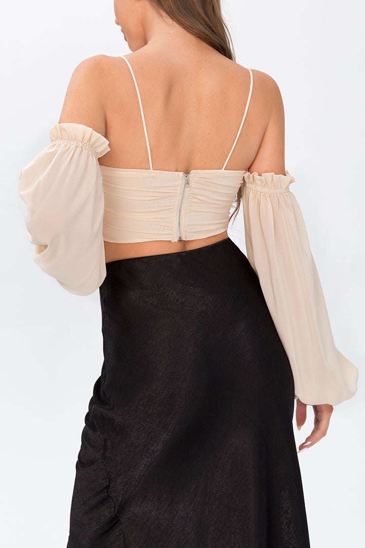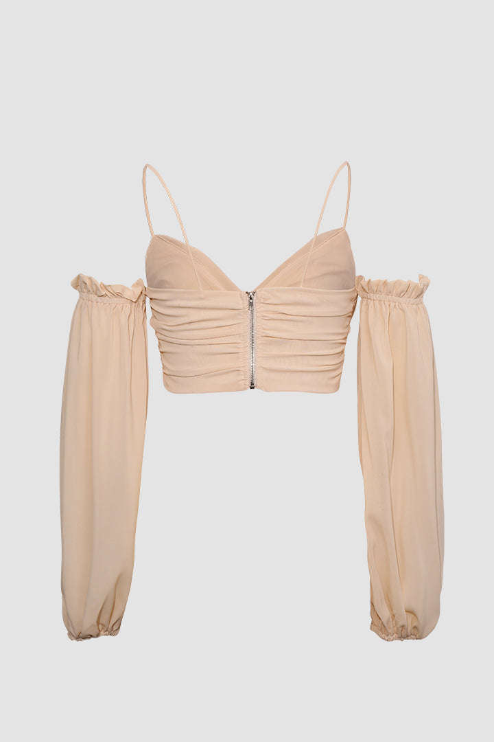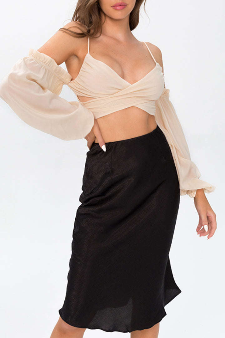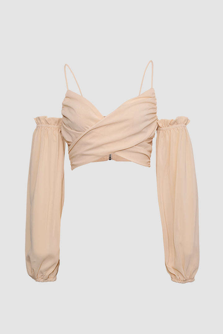 Ruffles Pleated Crossed Front Long Sleeve Top