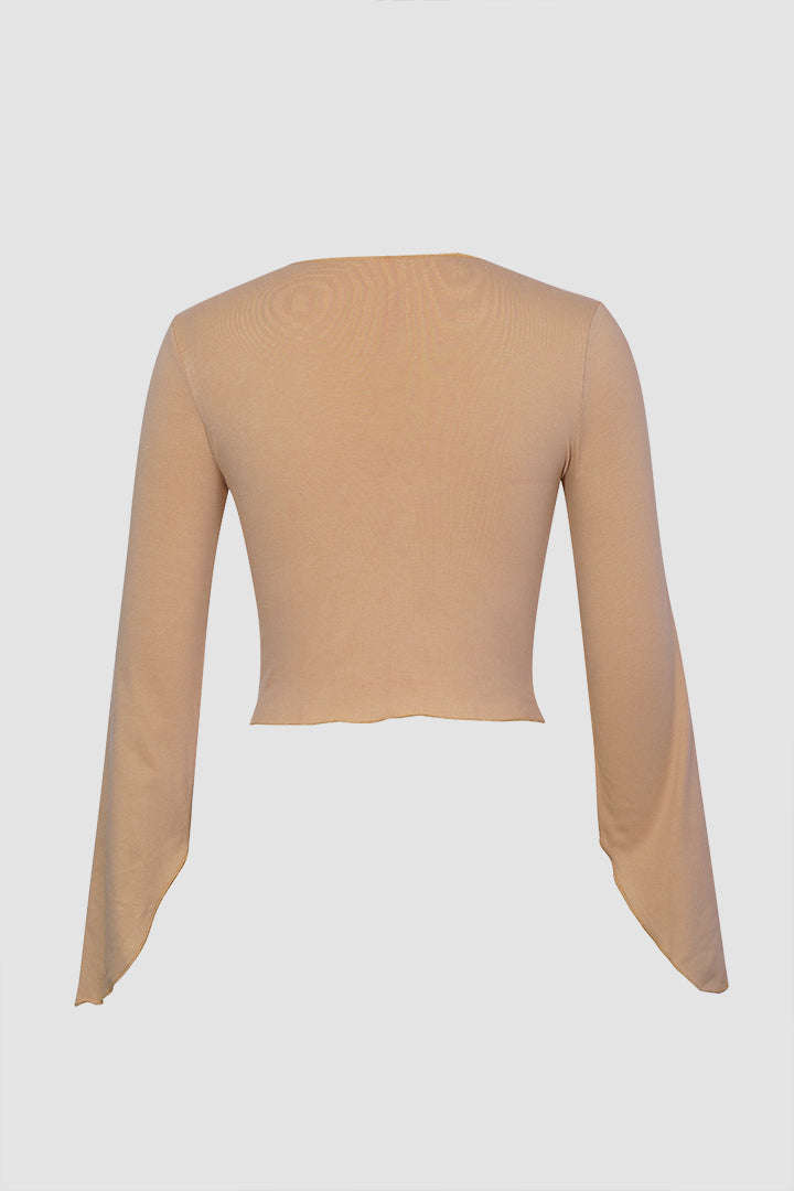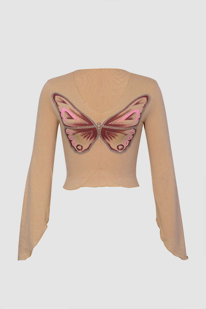 Butterfly Print Asymmetric Hem Long Sleeve Top