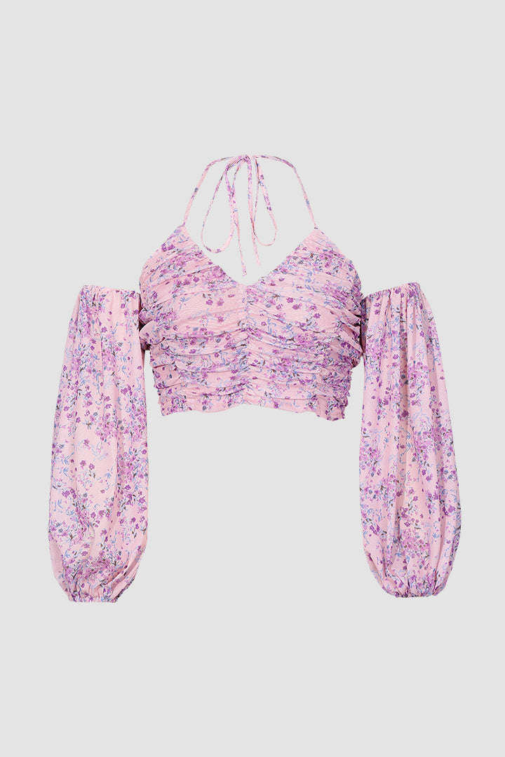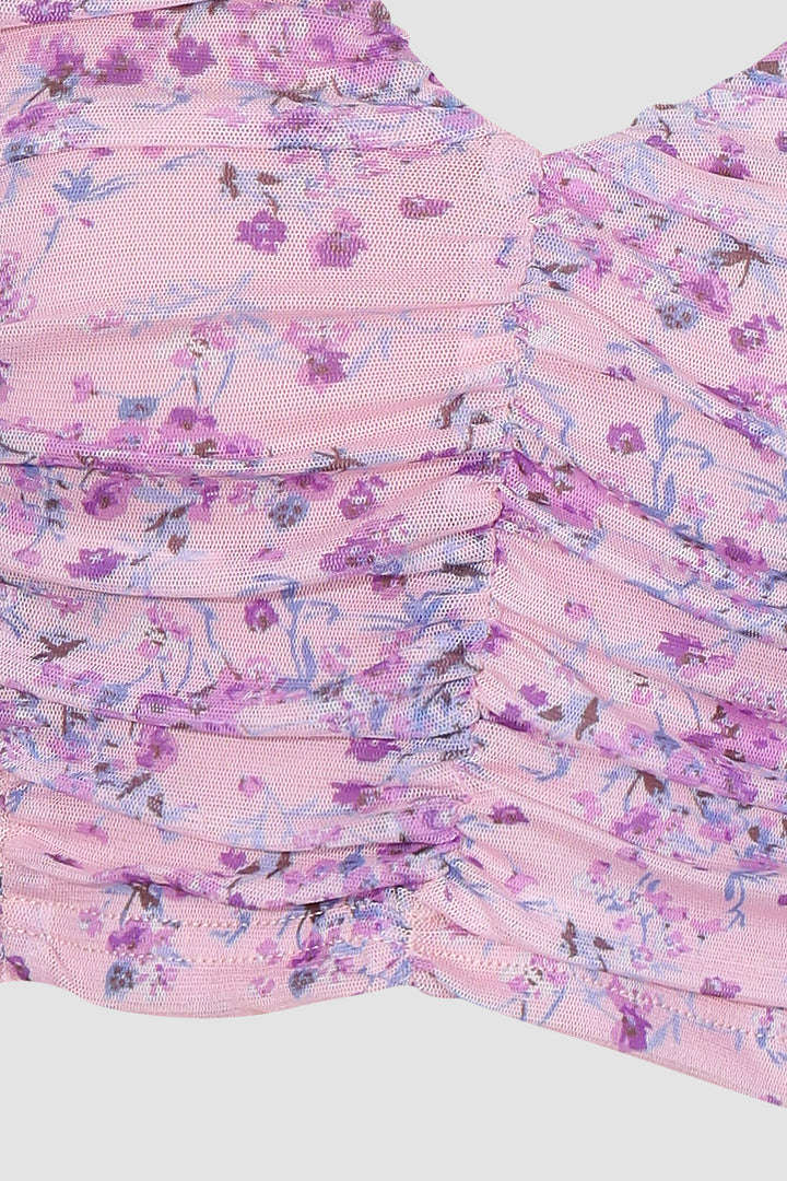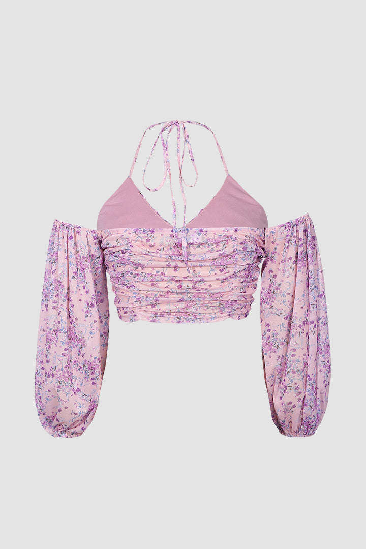 Floral Puff Sleeve Ruched Top