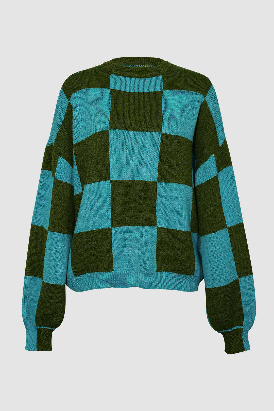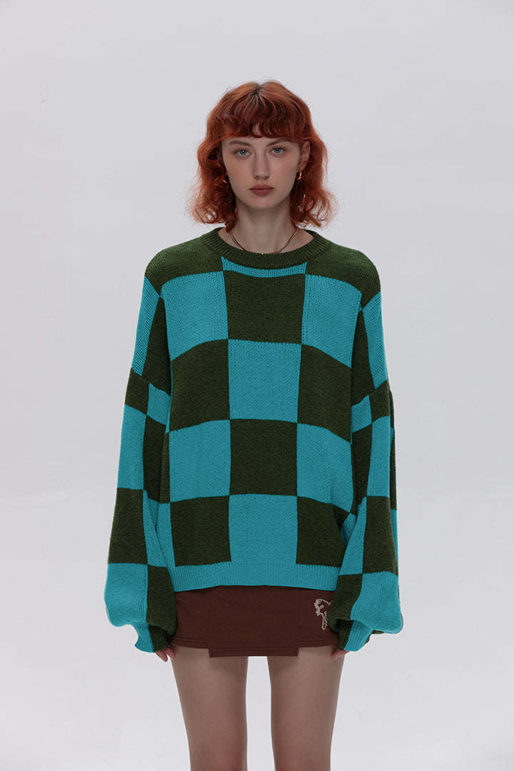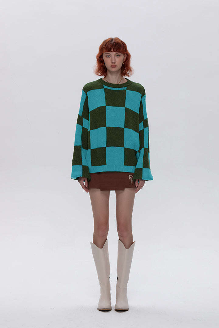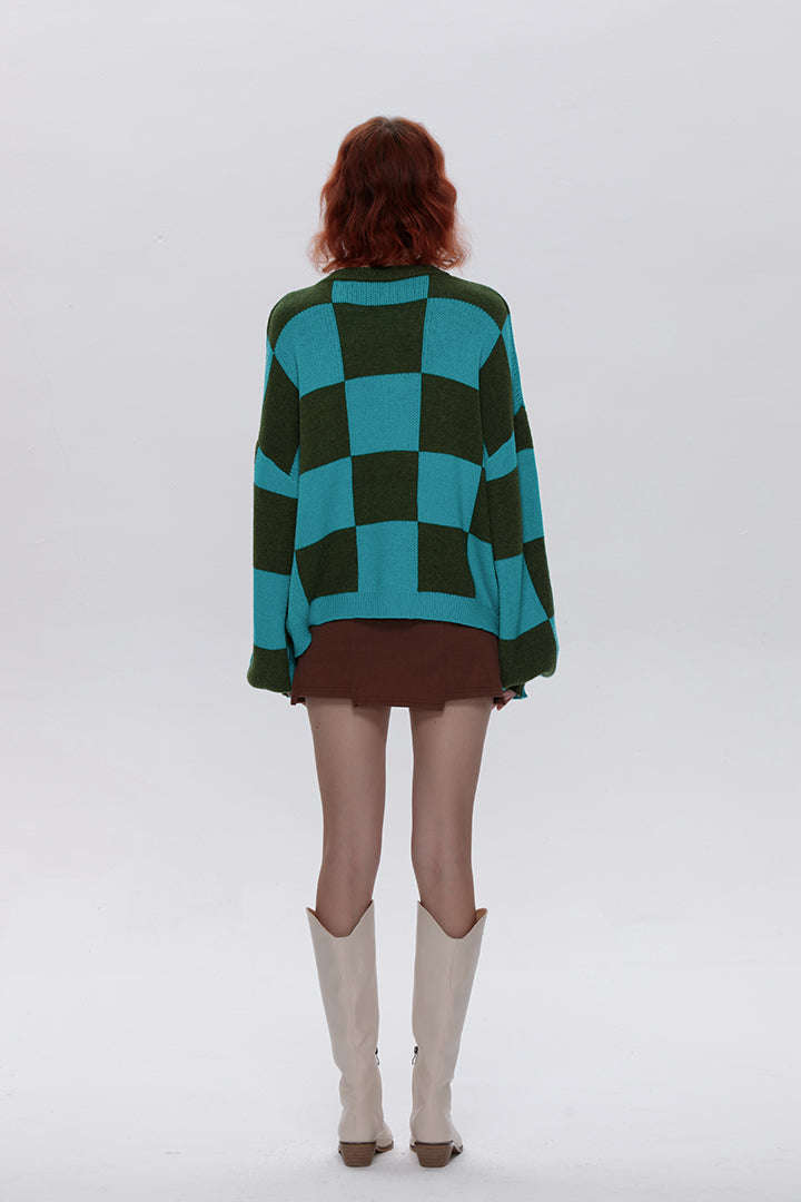 Green Checkerboard Long Sleeve Sweater