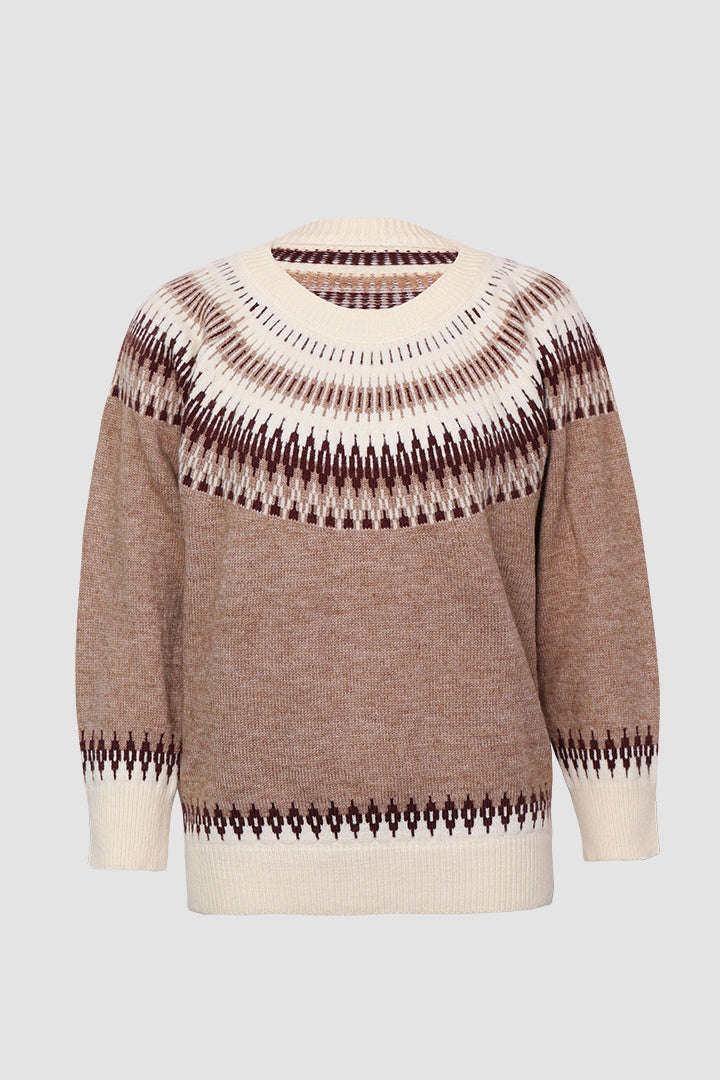Geometric Jacquard Color Block Sweater