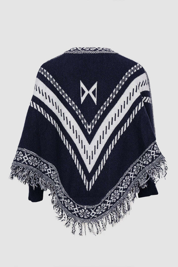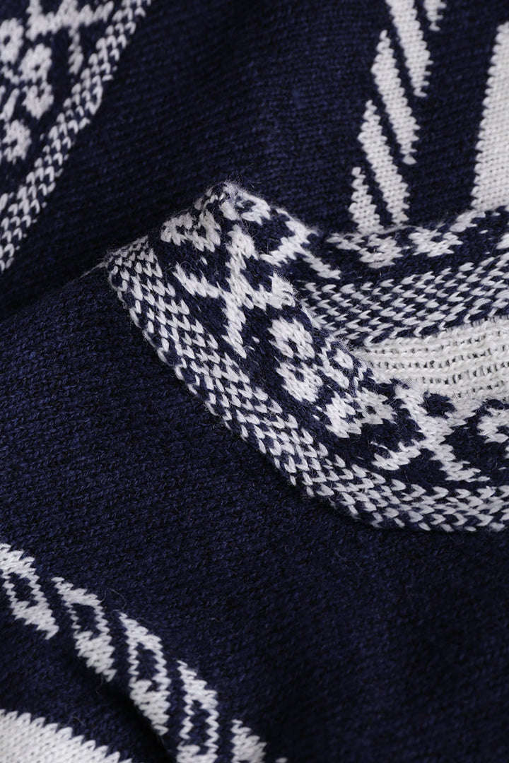 Round Neck Tribal Printed Long Sweater