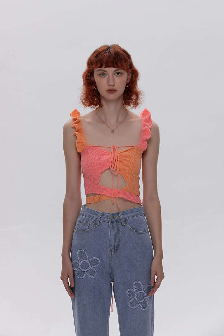 Frills Strap Knitted Top