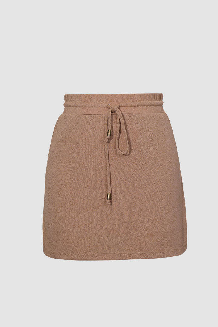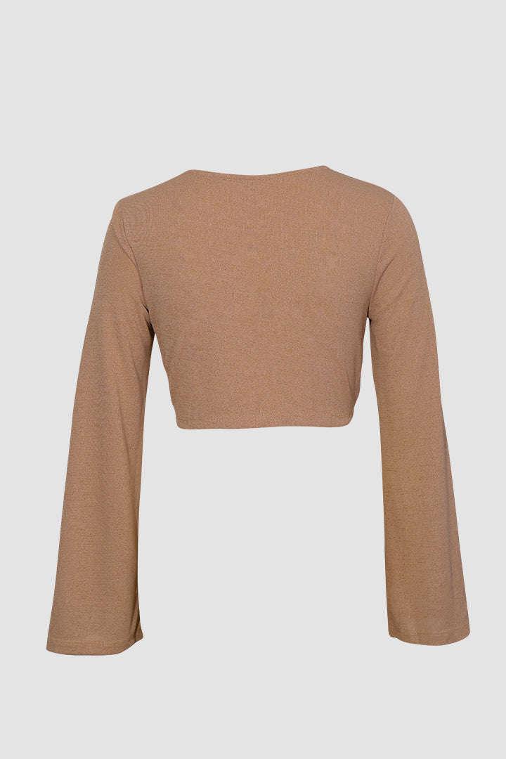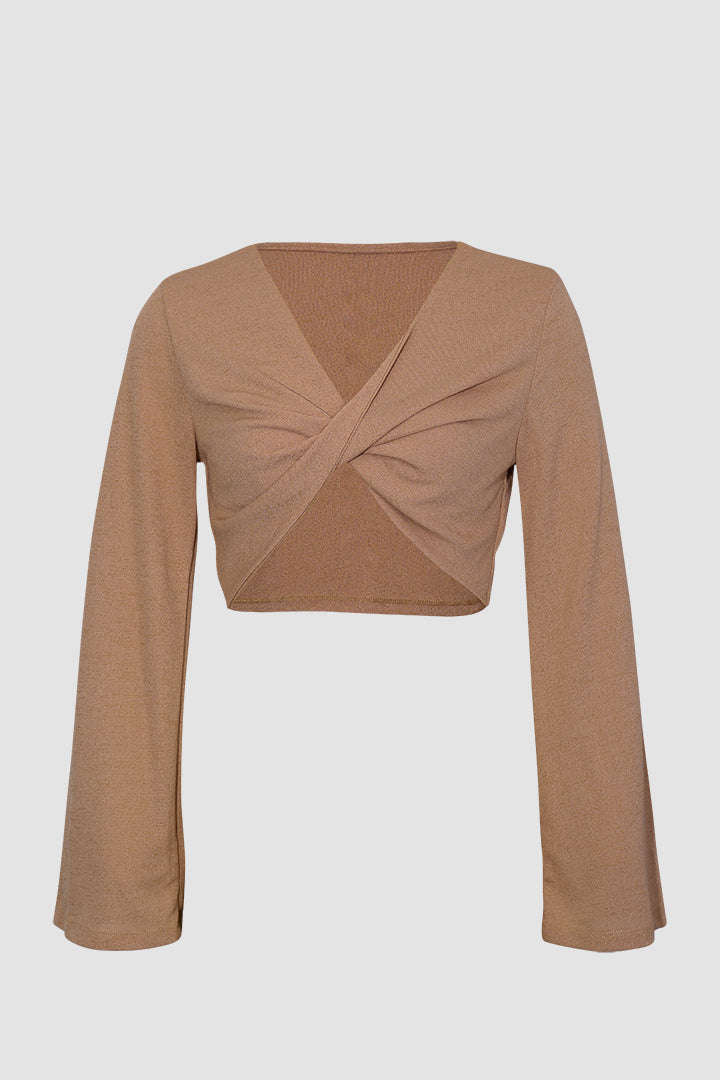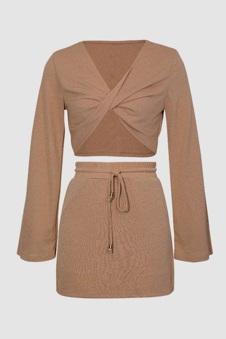 Twisted Front Long Sleeve Top And Mini Skirt Set