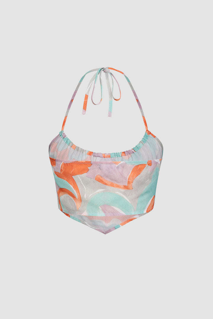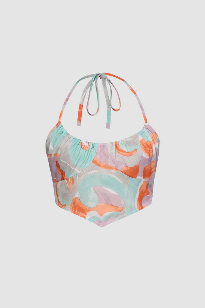 Abstract Halter Neck Crop Top