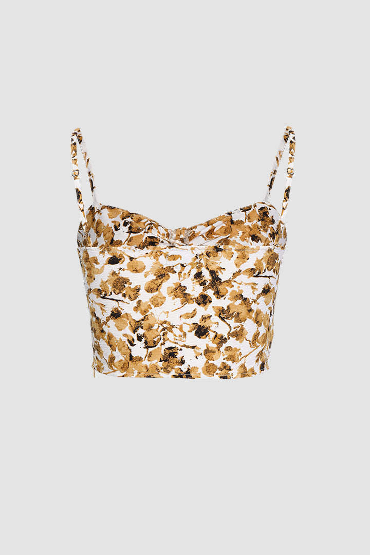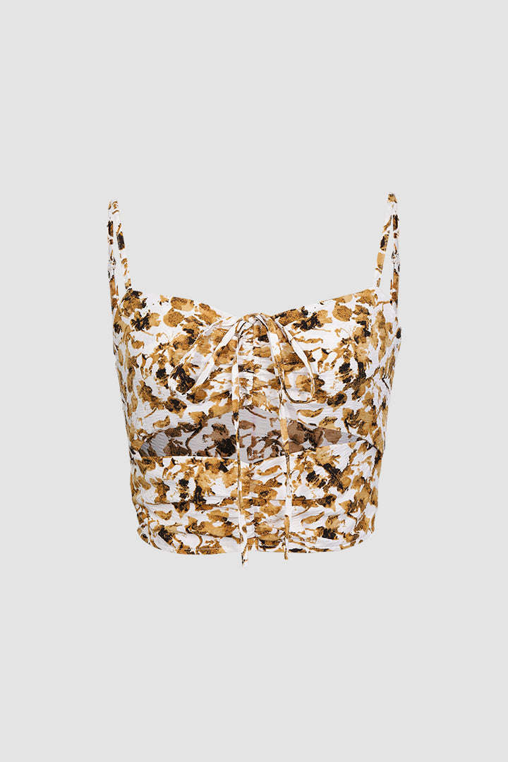 Abstract Print Ruched Tie On Front Cami